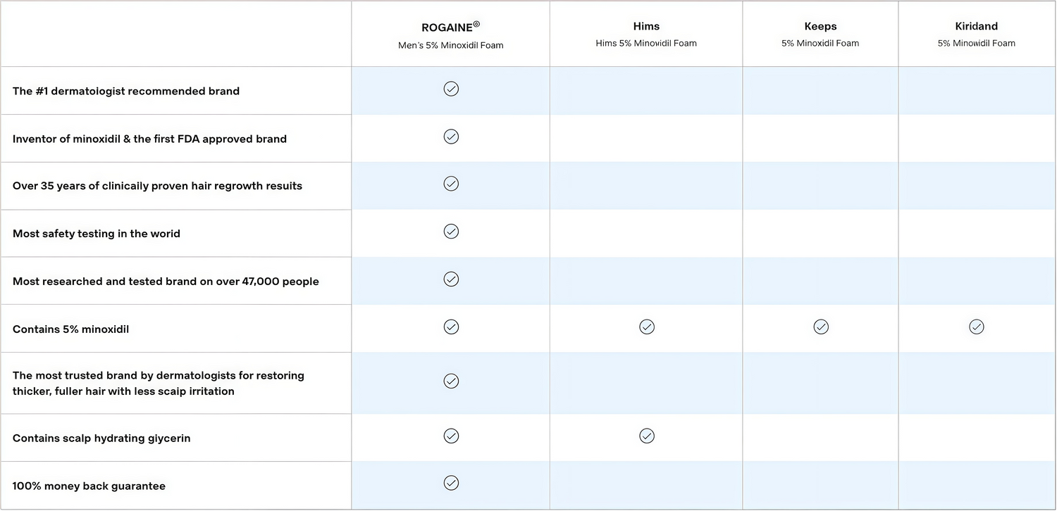 Discover the incredible benefits of ROGAINE® and see how we outshine other hair regrowth solutions on the market!